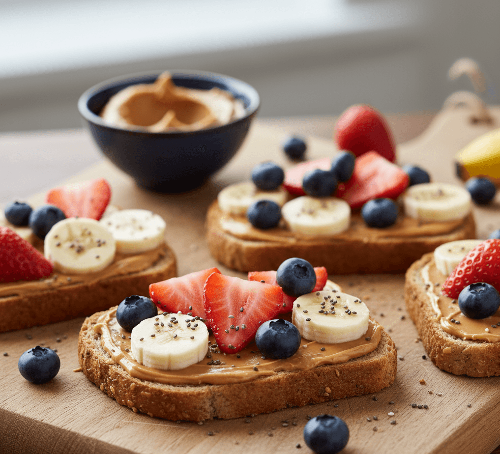 ब्राउन ब्रेड पर पीनट बटर लगाएँ या पनीर भुर्जी भरकर ग्रिल करें।