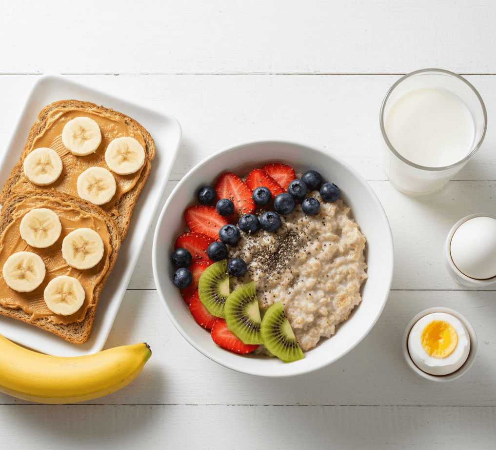 सुबह के झटपट नाश्ते में वो आइटम चुनें जिनमें प्रोटीन, फाइबर और नेचुरल कार्बोहाइड्रेट्स का संतुलन हो — जैसे oats, दही, फल, अंडा, या sprouts।