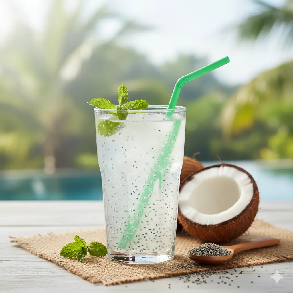 3. नारियल पानी + सब्जा सीड्स – ठंडक और ताकत साथ-साथ